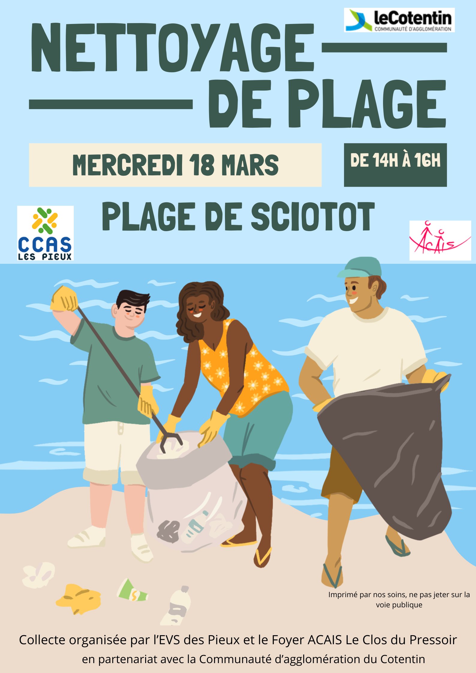 Grand nettoyage citoyen de la plage de Sciotot ! Participez à une opération de ramassage de déchets et faites un geste concret pour la planète, tout en passant un bon moment ! Prévoyez : gants et chaussures adaptées. Chaque geste compte, ensemble faisons la différence ! MERCREDI 18 MARS | 14h-16h Rendez-vous au parking de […]