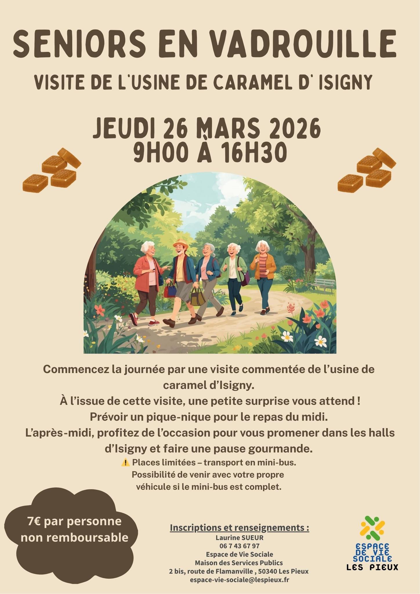 Tous les mois, une sortie est proposée au +60 ans ! Sortie de mars : Usine des caramels d'Isigny Visite commentée de l'usine, à l'issue de cette visite une petite surprise vous attend ! Prévoir un pique-nique pour le repas du midi. L'après-midi, profitez de l'occasion pour vous balader dans les halls d'Isigny et faire […]