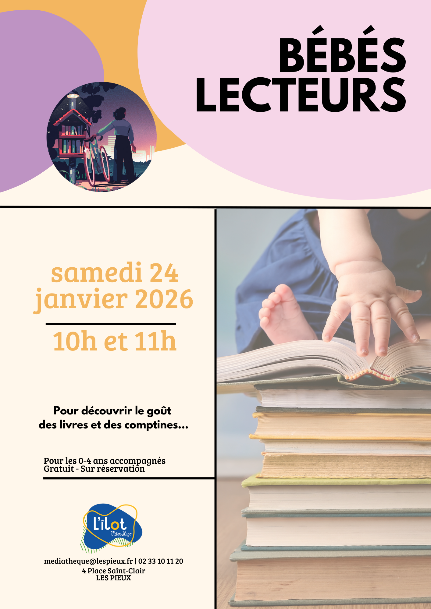 Pour découvrir le goût de la lecture, des livres et des comptines... SAMEDI 24 JANV | 10h & 11h 0-4 ans accompagnés GRATUIT - Sur réservation mediatheque@lespieux.fr | 02 33 10 11 20